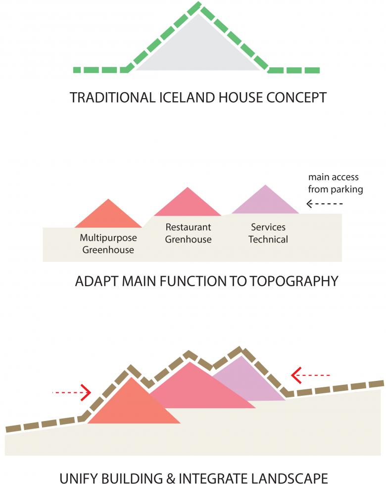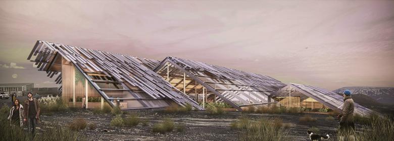 For this competition, participants were tasked with designing a greenhouse concept restaurant. With fresh, locally grown foods scarce in Iceland, particularly during the winter months, this competition called for submissions to design a greenhouse that would also function as a dine-in restaurant. Such a greenhouse would allow Vogafjós Farm to grow salad vegetables, fruits, and berries that could then be served, offering the guests an immersive experience as well as locally produced food.
