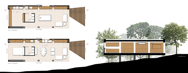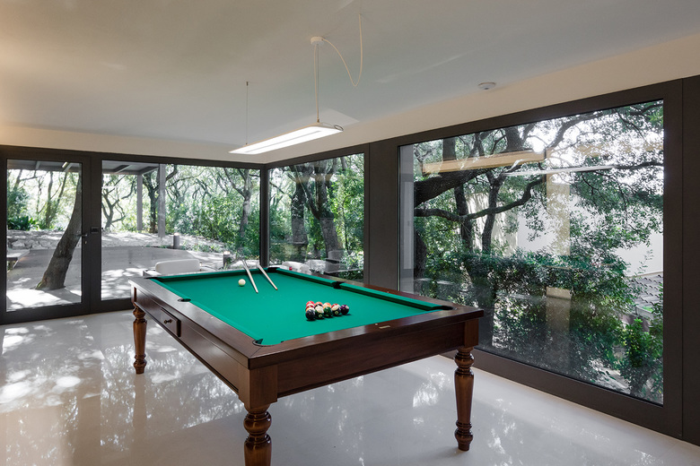 The versatile two-space interior offers a possibility to switch the game room into a living room, with a kitchenette, a bathroom and a bedroom.