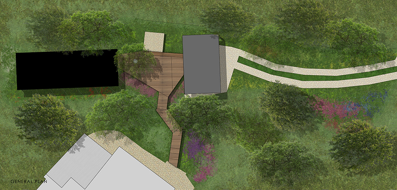 The study of landscape project in this context is basically built around one main idea: the desire to establish a dialogue between the new volume and semi-natural forest surrounding.