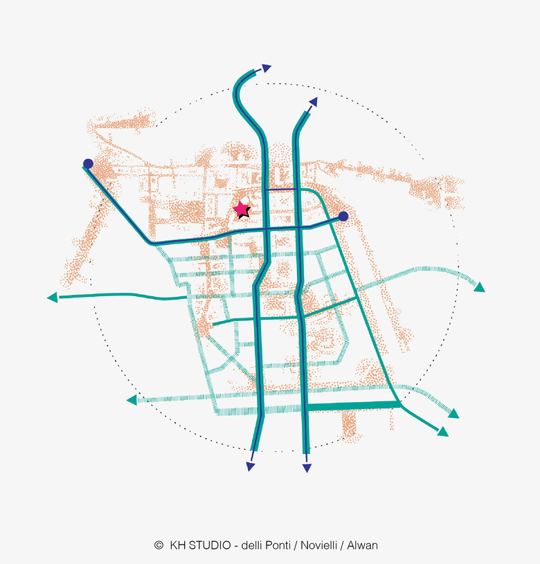 Bird's eye view of the territory / urban protagonists (Images courtesy of KH STUDIO / delli Ponti / Novielli / Alwan)