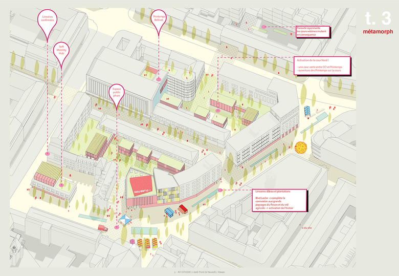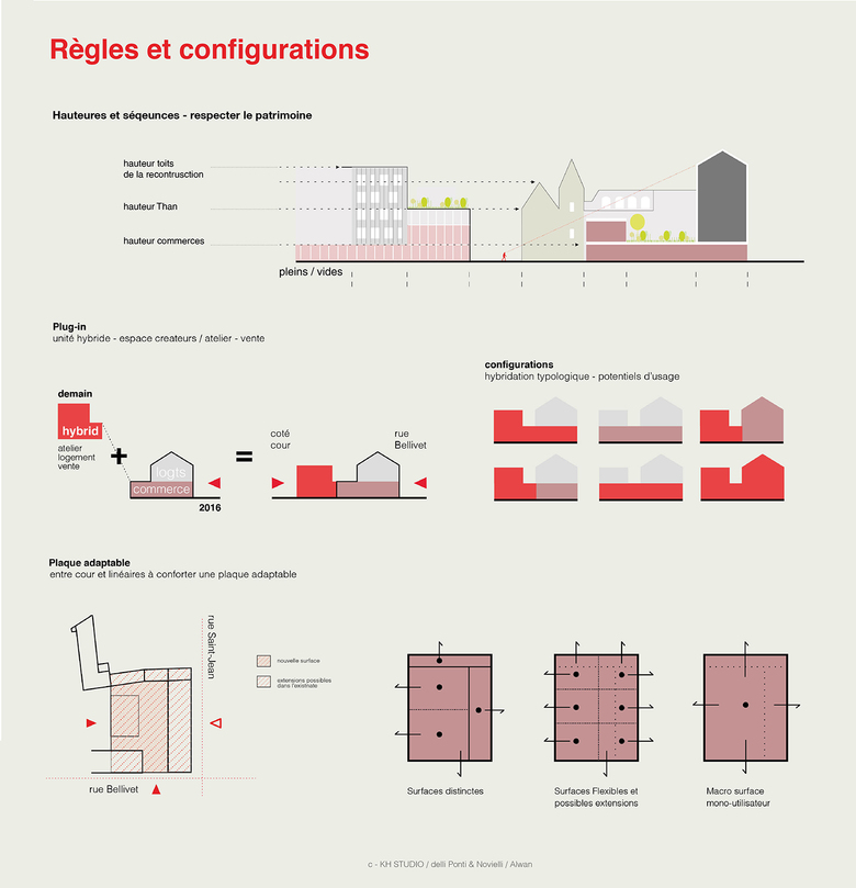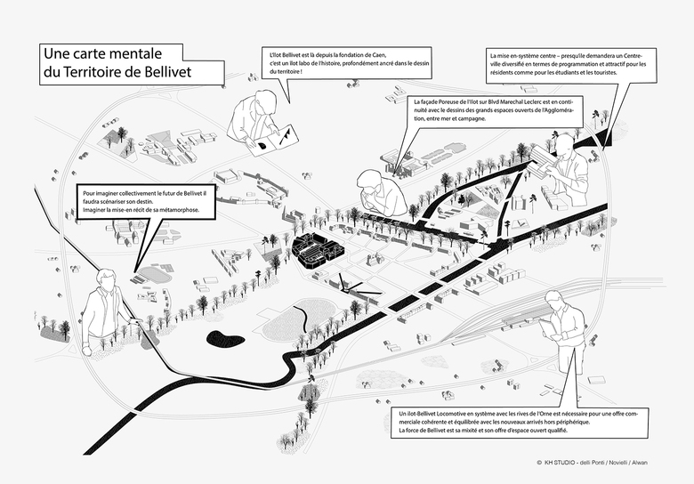 KH’s project reveals Bellivet’s urban potential orienting it towards a new coherence. The Bellivet’s Urban-LAB project elaborates an actor-relational method – “the script” (or scénarisation in French) – which associates public authorities and numerous private owners in a urban metamorphosis process, enhancing  local socio-economic dynamism and avoiding its surrendering to large private-driven acquisition procedures.