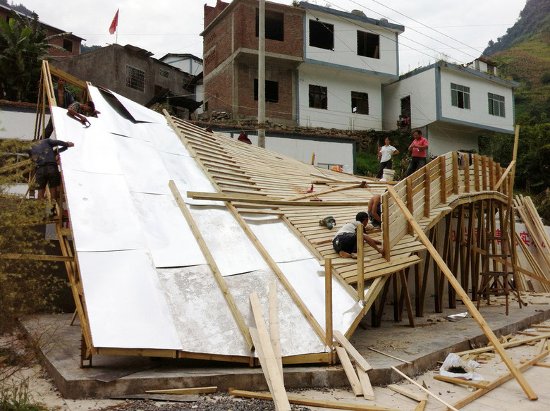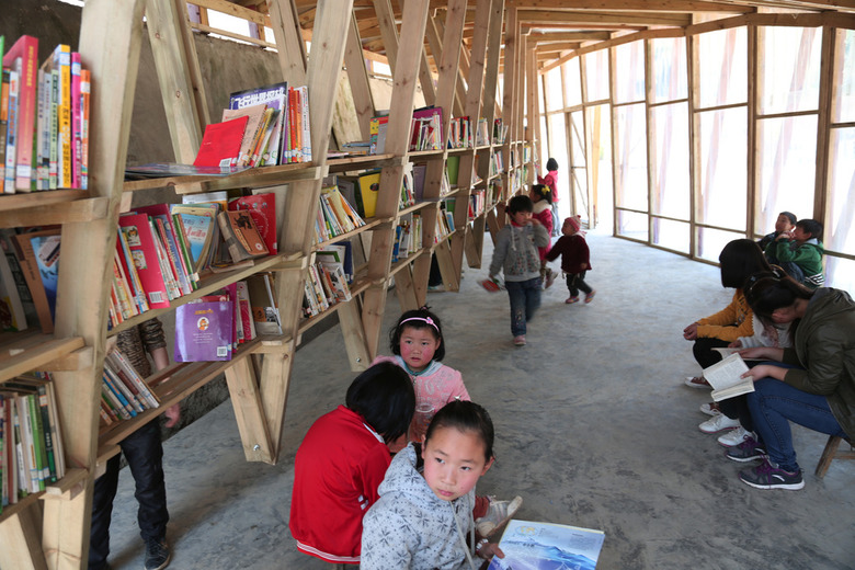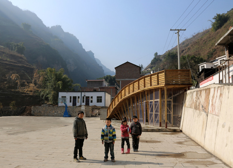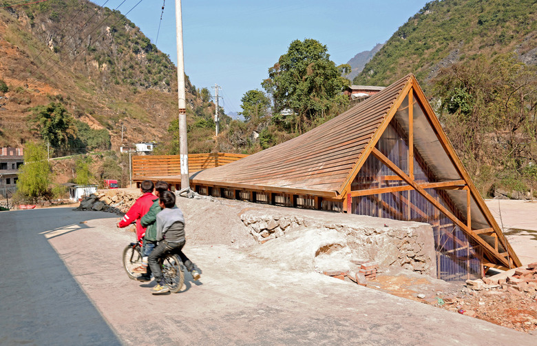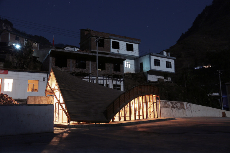 The University of Hong Kong decided to sponsor the design and implementation of a new library building. Located in the new but empty public plaza, it would serve to activate the community and provide a physical memorial for the event. The site of the library is against a 4 meter high retaining wall. The design spans across this level difference and acts as a bridge between the rebuilt village and the new memorial plaza. Emphasizing its location in a remote mountain valley, the design responds visually to the space of the valley, offering stunning views across a dramatic double curved roof. The structure itself rises to a peak, a monument to the earthquake and rebuilding effort.