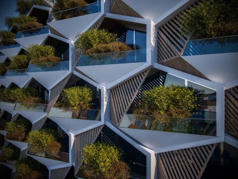 One hexagon unit consists a polygonal area to inhabit and a triangular cavity to be used as an irrigable garden. When all modules combined, these triangle cavities act as a truss structure transferring the building's loads to lower members. As a whole, Urban Rural creates interdependencies between building systems, structure, landscape and architecture. Integration of such complex systems are achieved through modular design that persevere flexibility.