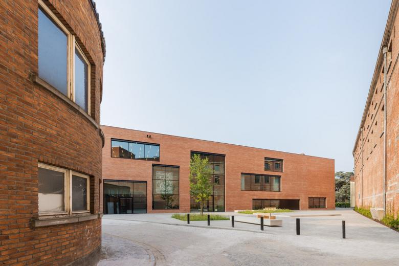 The so-called Pupillenschool, a building from 1880, was formerly a school where children of soldiers were educated until the age of 16 when they could register for a regiment. It has been embedded into KAAN Architecten’s design and is now the cornerstone of the new building. Both outside and inside, the historic façades blend perfectly with the generous spaces, while the brickwork dialogues with light gray concrete elements.