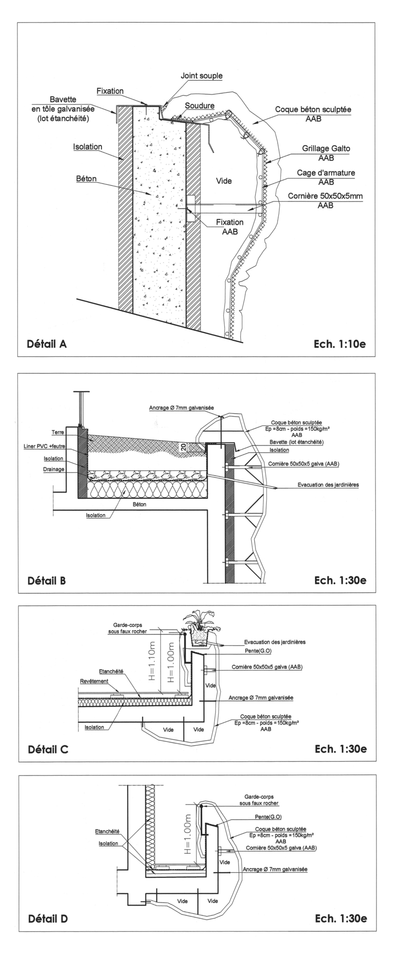 The existing rock is kept for the ground floor, whereas in the upper levels, it is recomposed with an identical texture to that of the existing rock. The designed forms along with the recreated vegetation expose the natural rock features of fractures, cavities and strength, without leaving the impression it is merely some sort of cladding of built walls.
