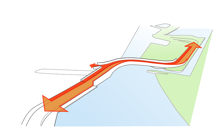 The bat bridge becomes part of the Poelzone, an elongated area in the Westland between the existing centers of 's-Gravenzande, Naaldwijk and Monster. Along the waterway a new green recreational zone with natural banks and spawn sites for fish will be realized. The landscape design by LOLA Landscape is made to strengthen the existing green and ecological connections in which natural and recreational values ​​complement each other.
