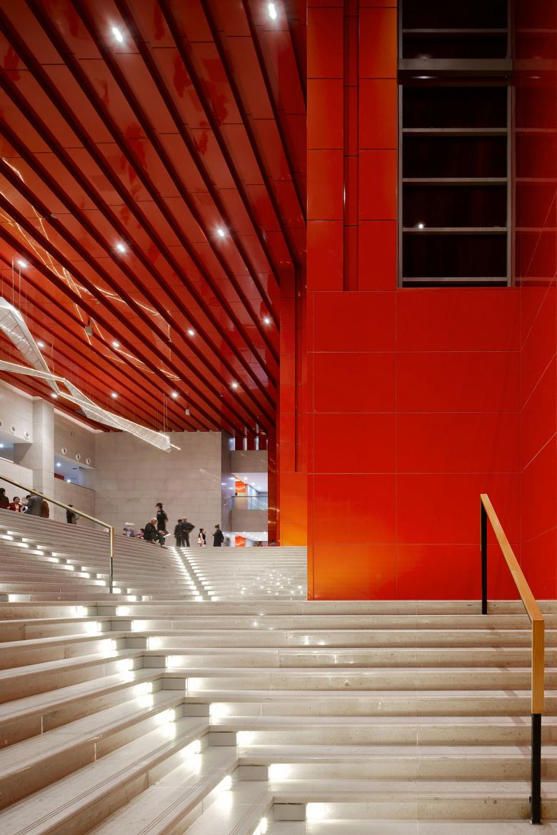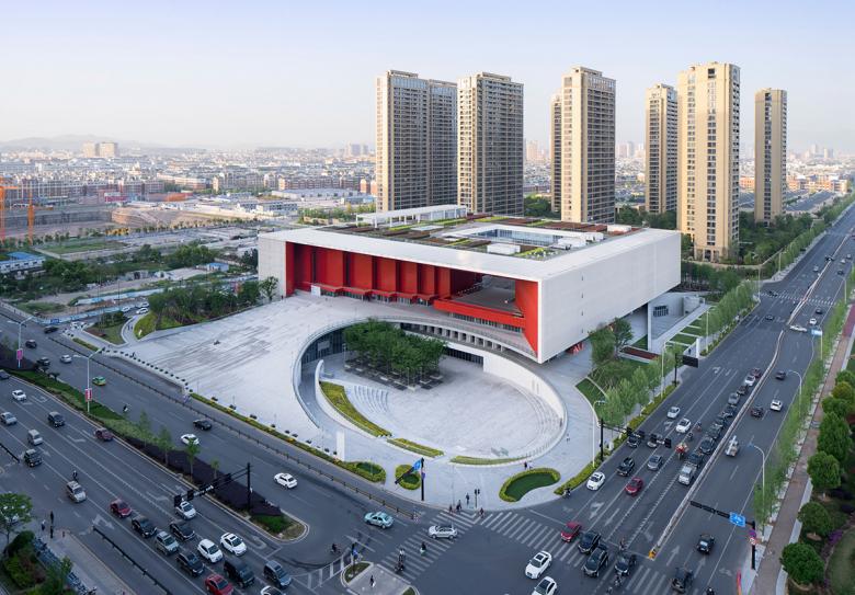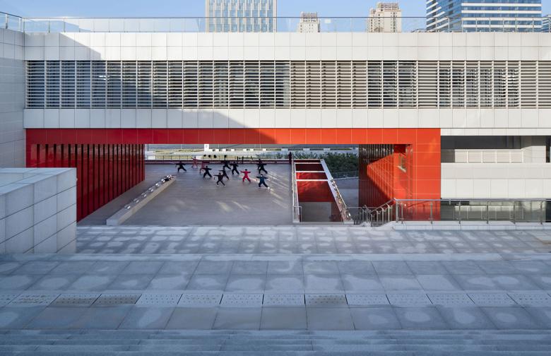Yiwu Cultural Square is a large-scale cultural complex combining various functions of culture and entertainment, education and training, sports and fitness, etc. Its design, which is minimalist with huge building volume, differs from that of ordinary buildings in the city. Its center is not a grand indoor hall, but a three-dimensional courtyard where a sunken square is linked with a roof garden through ramps and big steps. The space is organized with circulation and transforms step by step, and the landscape presented to people can be different as they walk around this place. Such a design technique learns from the space organization of traditional Chinese garden and builds on it.