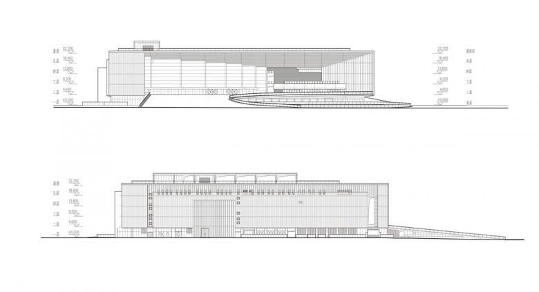 At the main entrance, the huge roof is like the clouds in the sky, and the huge gray space under the entrance is derived from the traditional public space model from Jiangnan regions, such as stage, ancestral hall, etc. This meets the needs of public cultural activities of Jiangnan regions. The design of combining the sunken square and the audience area is suitable for organizing public cultural activities with Chinese characteristics.