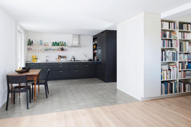 Beim Umbau einer Doppelhaushälfte aus den 1920er Jahren im Winterthurer Arbeiterwohnquartier Töss sind mit minimalen Eingriffen in die Grundstruktur des Hauses grosszügige Räume entstanden.