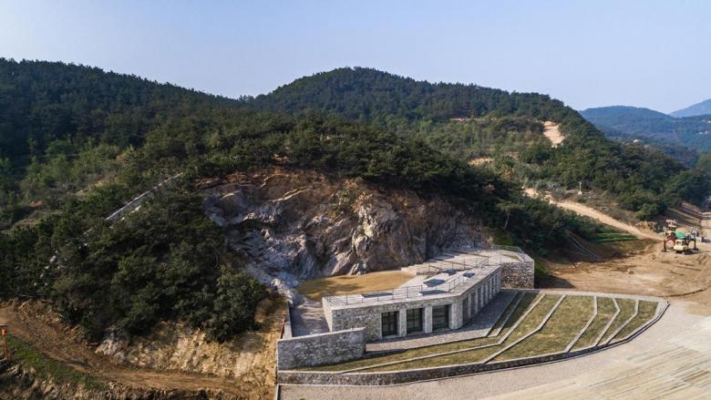 Junshan Cultural Center is located just outside of Beijing in the midst of the undulating mountain ranges and meandering rivers near the Miyun Reservoir.