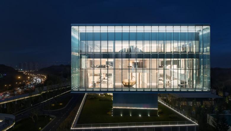 Sunac • Grand Milestone Modern Art Center appears like a large crystal "gift box." Approaching the interior design, CCD broke the boundaries among the building, landscape and interior, injected purity and tension into the 5,500-square-meter spatial volume.