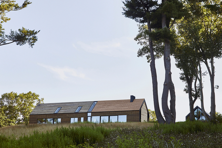 This house, located a few hours north of New York City, takes its name from the pond it sits upon and looks across. Following the pond's edge, the house's curved form also relates to the sun overhead. Dean / Wolf Architects answered a few questions about Ephemeral Edge.