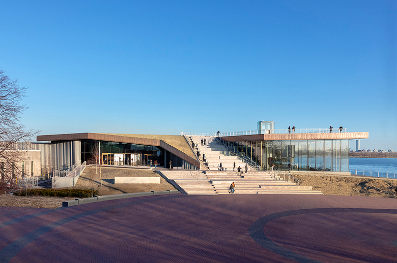 The always free Lincoln Park Zoo in Chicago opened its new Searle Visitor Center in November as the latest piece in its Pride of Chicago capital campaign. Topped by angled planes of metal, the building makes for a striking gateway to the zoo from the east. Ross Barney Architects sent us some...