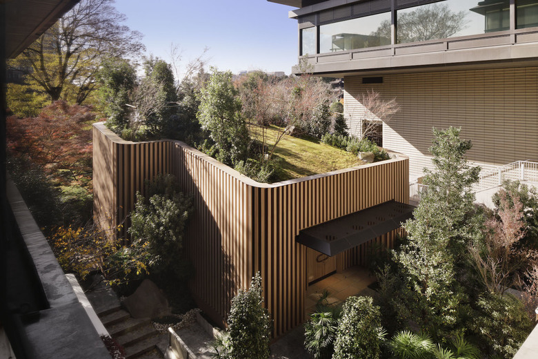 The Tokyo area where the historic Hotel Chinzanso is located is known as Camellia Hill, in reference to the wild camellia flowers that bloom there. ("Chinzanso" actually means "guest house on Camellia Hill.") The latest addition to the hotel's centuries-old gardens is a shrine topped by a roof...