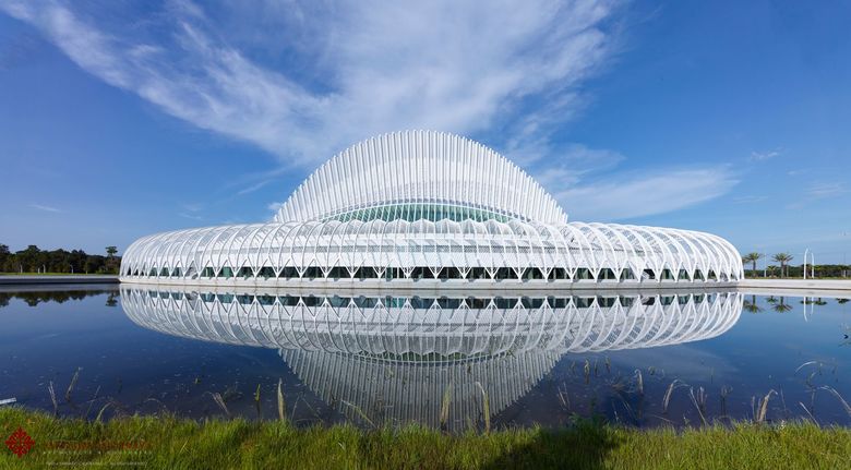 The building is envisioned as a “vessel within a vessel within a vessel.” The structure is a branching concrete frame, the inner layer is bamboo and the outer layer is matte white glass with colored glass fragments recalling “neume notation” of Medieval music of the 13th...