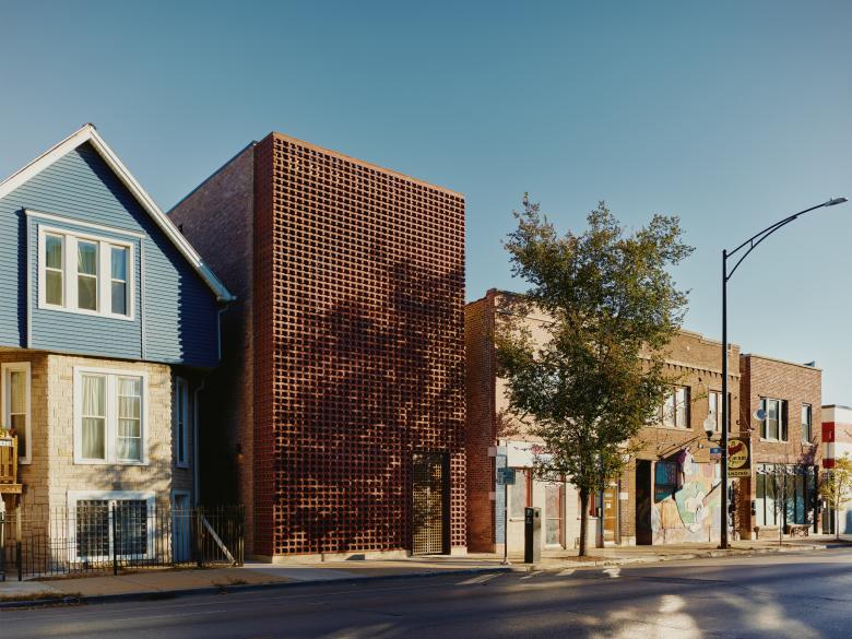 An empty one-story dentist's office in Chicago's Logan Square neighborhood, about five miles northwest of the Loop, has been transformed into the two-story home for a boutique furniture studio. A workshop and showroom for Nothing Design Company sits behind the screen-like brick facade, no...