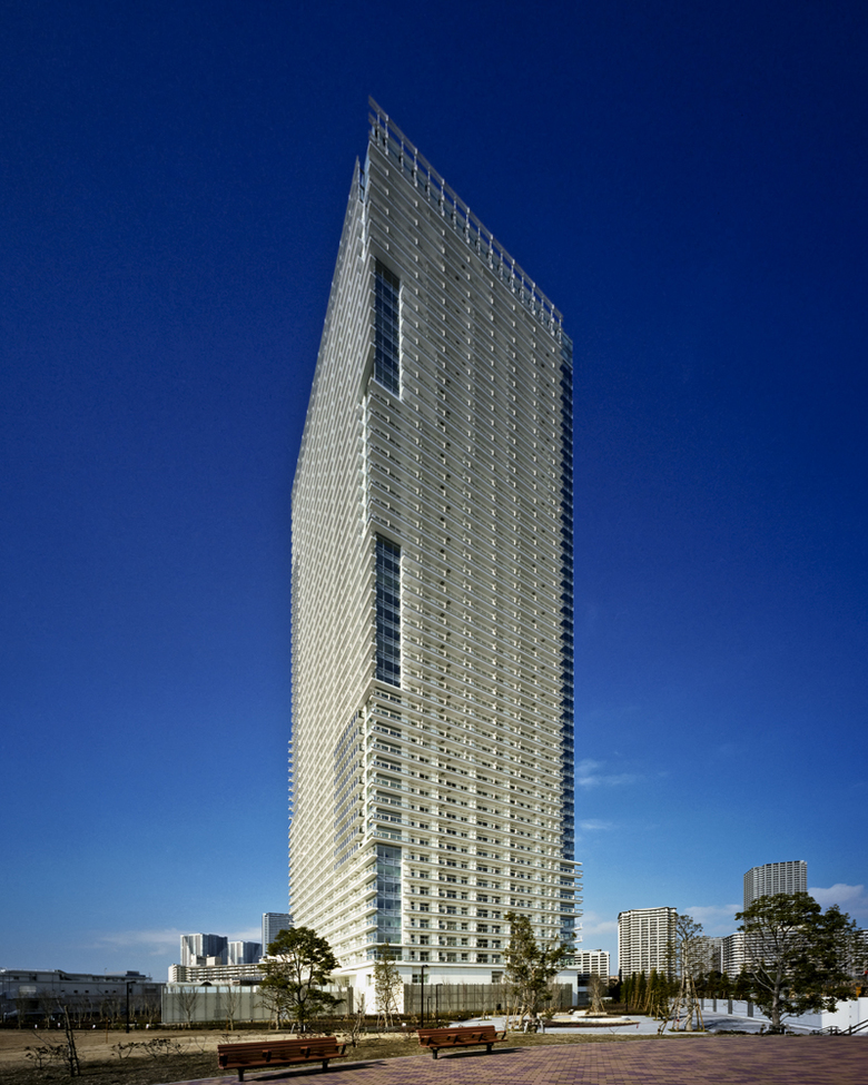 Situated on the waterfront promenade of Tokyo Bay, this project is a focal point for the Harumi district.