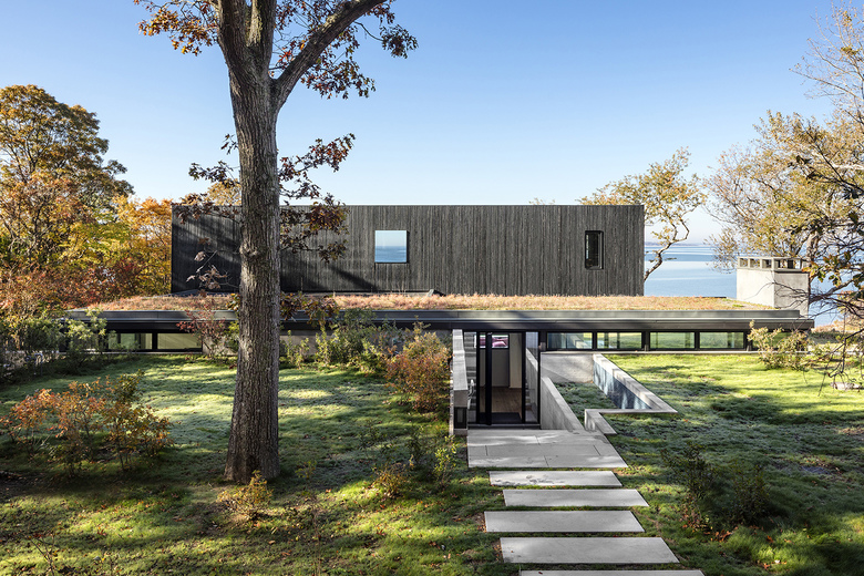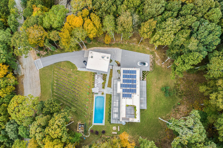 The aptly named Eco House sits in a clearing in the woods on Shelter Island, a small island that can only be reached by ferry from Long Island. Designed by Vibeke Lichten, the house is built of concrete and topped by solar panels. The architect answered a few questions about the project.