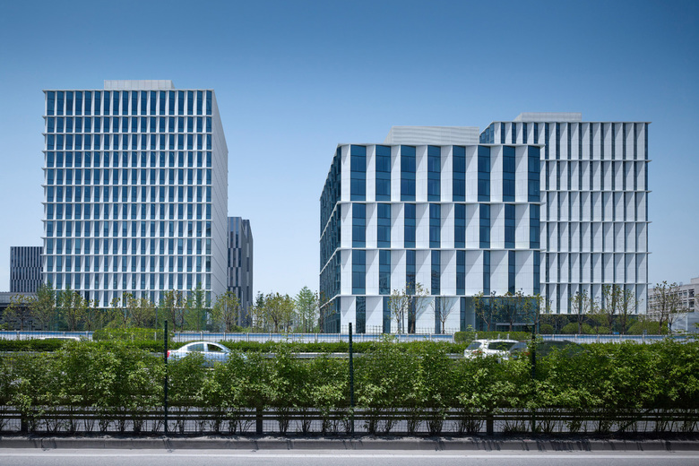 The 3Cubes office buildings designed by gmp for the Caohejing Business Park in the western part of Shanghai have now been completed.