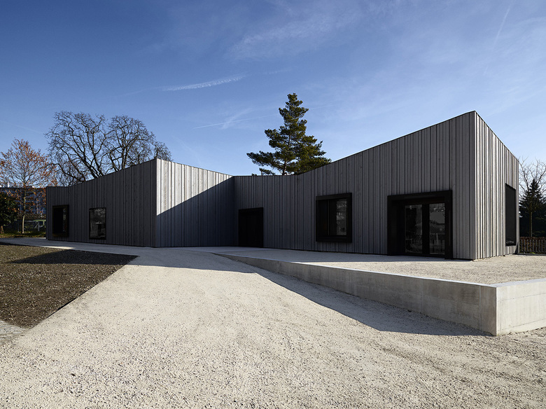 The building is located on the higher grounds of Geneva’s Mervelet neighbourhood. At the heart of a rapidly changing residential area, the site has the remains of a garden-city with scattered century-old houses and trees.