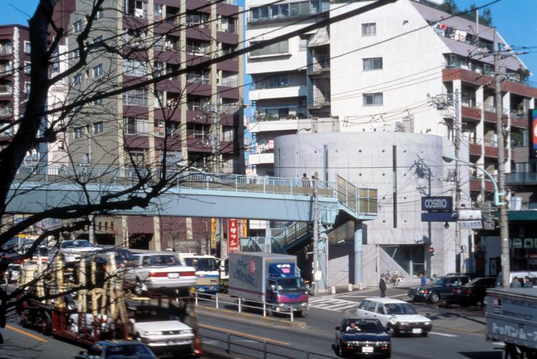 This building, which houses an obstetrics and gynaecology clinic, faces Ring Road No. 8 in Tokyo, and a footbridge spanning the road is situated close to the site.