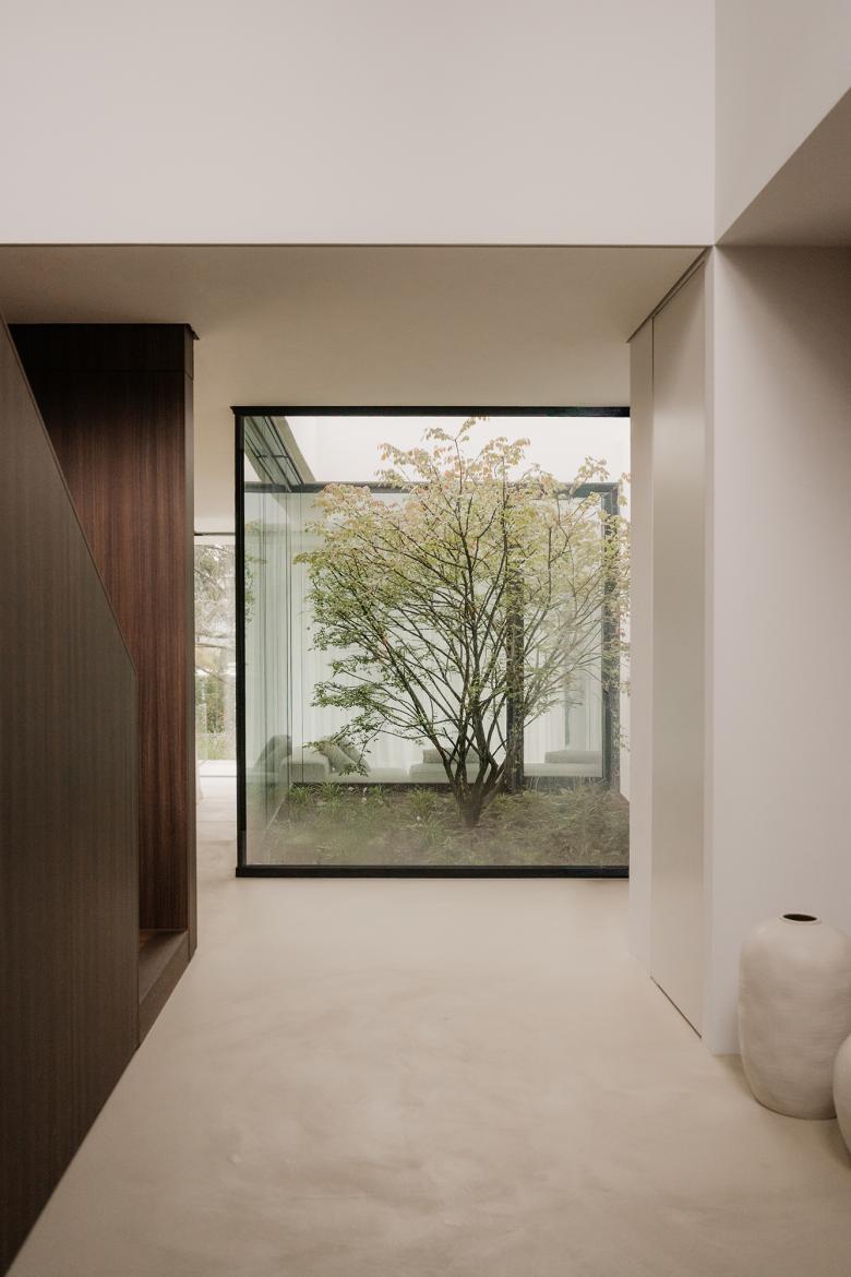 At the heart of the house lies the planted central atrium. It connects the open living areas along fluid axes, drawing light, air, and nature deep into the interior. It creates zones for togetherness and tranquility – open, effortless, and imbued with an innate sense of generosity.