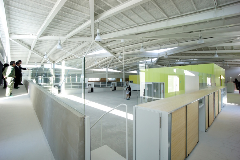 The USB rooms are raised one meter off the ground to function at the same height as the corridor which links them, allowing the manufacturing level below to be viewed from all sides.