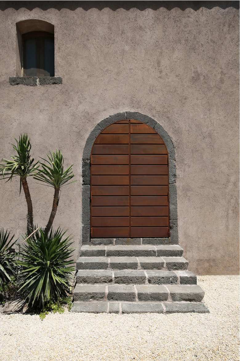 All the interior walls are finished with natural lime skimmed, according to tradition, in an irregular manner. The walls are not painted to emphasize the beauty and authenticity of the material. The exterior are made by "cocciopesto" - a sort of natural plaster - in order to preserve the historical characterization given by time.