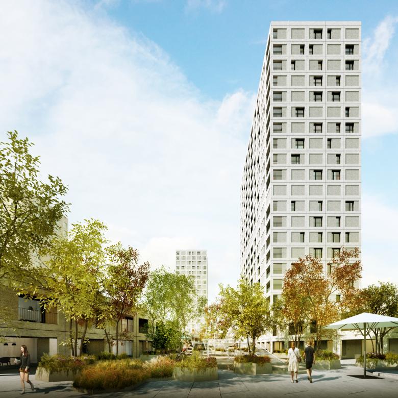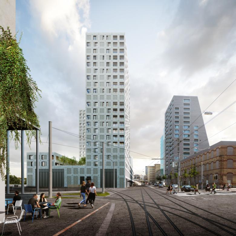 Die Entwurfsidee entwickelt aus den bruchstückartig vorhandenen Bestandsteilen ein neues städteräumliches Ganzes. Das Areal Depot Hard markiert, am Escher-Wyss Platz bzw. am südlichen Limmatufer gelegen, den Auftakt zum Stadtquartier Zürich-West. Die beiden Hochhäuser sind weder Solitäre noch bilden sie einen Cluster. Der Entwurf für ein neues Tramdepot und eine Wohnsiedlung manifestiert neben dem programmatischen auch eine dezidiert städteräumliche Klärung. Die Freiräume für die Bewohner werden auf drei unterschiedliche Ebenen durch die Ausformulierung eines Stadtplatzes, eines Hofes und einer Dachterrasse thematisiert. Die stark funktional geprägte Erdgeschossebene wird geklärt und in ihrer urbanen Ausdrucksweise „hart“ weiterentwickelt. Geschützt und abgehoben von den harten äusseren Einflüssen entfaltet sich im Innenhof ein weicher, lebhafter Wohnraum. Ohne Anspruch auf Vollständigkeit gibt eine zonierte Belagsfläche aus grossformatigen Platten den Bewohnern das Spielfeld vor, um einen auf ihre Bedürfnisse abgestimmten Wohnhof entstehen zu lassen. Das modulare und adaptive Konzept wird als Prinzip zur Bespielung der zur Verfügung gestellten Freifläche
