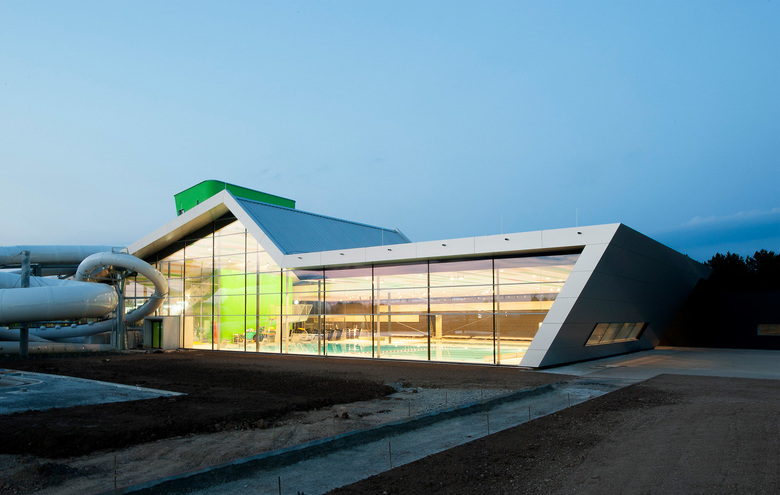 New construction of recreational and sports baths with indoor pool and open-air pool, adventure pool and sauna world.