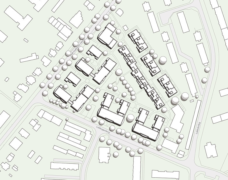 Das städtebauliche und architektonische Konzept bildet die Grundlage für Nachbarschaftsförderung und Aktivierung von menschlichen Ressourcen im gegenseitigen Interesse. Die Grundlagen für eine kreative Mischung von Wohnen und Arbeiten sind geschaffen und bilden essentielle Eckpfeiler des Konzepts. Ein Intranet verbindet alle Bewohner miteinander. Die Nachbarschaftsplattform regelt Angebot und Nachfrage für die Organisation des Alltags. Innenhöfe schaffen intime, kommunikative Räume, das alternsgerechte, schwellenfreie Fusswegsystem ist dicht vernetzt. Die grüne Mitte dient als zentraler Platz, auch für den direkten Austausch von nicht-digitalen Nachrichten. Mit dem KFW 40 Energiekonzept und dem Holz-Pellets- Blockheizkraftwerk ist das Projekt vollständig CO2-neutral. Der schützenswerte Baumbestand ist Teil der naturnahen Freianlagen, die auf Basis der Wettbewerbsentwurfes von czerner göttsch architekten gestaltet und in der Realsierungsphase von den Landschaftsarchiteken Becker-Nelson weitergeplant wurden. Die Grundrisse der Wohnungen bieten vielfältige Optionen für die unterschiedlichsten Lebenssituationen, auch für Kombinationen von Arbeiten und Wohnen. Der Sicherung der vielschichtigen Qualität des Wettbewerbsentwurfs hat sich frühzeitig eine bezirkspolitische parteienübergreifende und behördliche Planungsgruppe als Grundlage des B-Plan -Verfahrens des Themas angenommen und das Projekt auf vorbildliche Weise politisch geleitet.