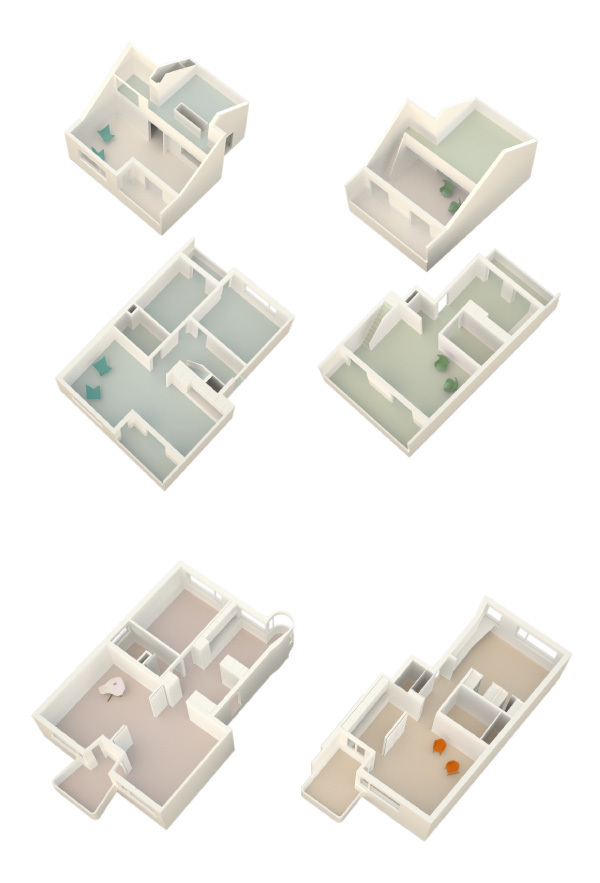 Die Gebäude weisen eine intelligente grosszügige Grundstruktur auf, die auch langfristig gut und flexibel nutzbar sein wird. Unsere Konzeption zeigt auf, wie unter Wahrung dieser bestehenden Raumstruktur mit präzisen Eingriffen die Wohnungen neu interpretiert und durch gezielte gestalterische Massnahmen gesamthaft aufgewertet werden können. Der Einbezug der strassenseitigen Balkone und Loggien in die Wohnfläche und das Entfernen der WC – und Speiseraumeinbauten vergrössert die Wohnungen und stärkt die wichtigen Querbezüge zwischen der städtischen Nordostseite mit Blick zum Zürichberg und der „grünen“ Südwestseite mit Weit- und Seesicht. Die räumliche und funktionale Qualität des „Durchwohnens“ prägt die Wohnungen und wertet sie entscheidend auf.