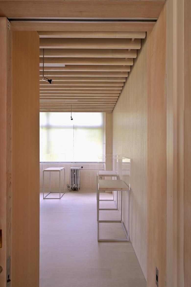 We conceived a space inspired by a scene from a school song to serve as a base for all those involved, including graduates and current students of Hakui High School. The gentle ridges of Keta-no-Ura in the distance, the waves lapping on the shore, and the clouds lying over the sky, all suggest a soft space, expressed by the curved ceiling composed of wooden louvers above the hall.