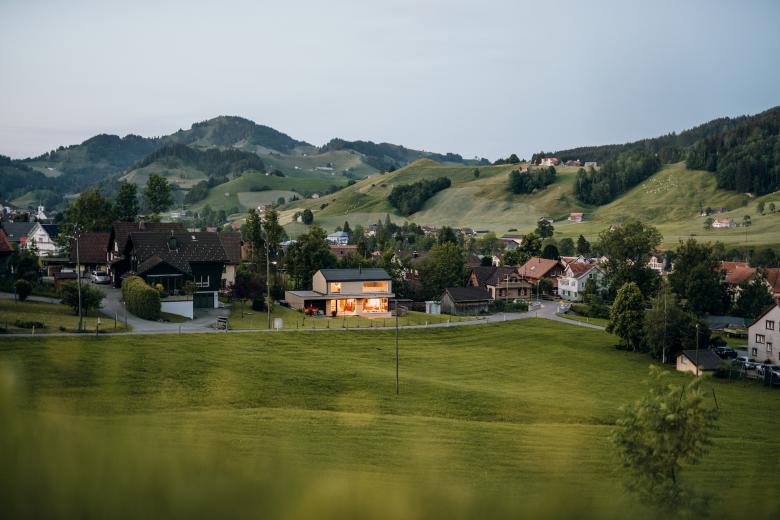Ein Ferienhaus mit grandiosem Blick auf den Säntis und die umliegende Hügellandschaft.