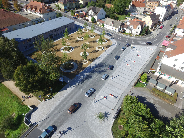 However, the traffic areas were not reorganized. The border forecourt in Bad Muskau is located at the interface between the urban space and the park landscape of the UNESCO World Heritage Site Muskau Park. The project scope includes the squares to be created at the bridgehead (connection to the Republic of Poland), the crossings into the palace and spa park along the Neisse River, and the adjacent Görlitzer Straße street.