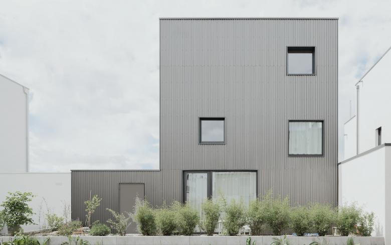 From the outside, the dark corrugated metal façade underlines the building’s substance, whilst the industrial material is reminiscent of the former factory grounds. The building’s energy consumption has been optimised by a controlled ventilation and heat recovery system. Furthermore, it features a photovoltaic system installed on the roof. Aside from supplying the residence, it provides sufficient electricity for the electric car to commute to the city centre...