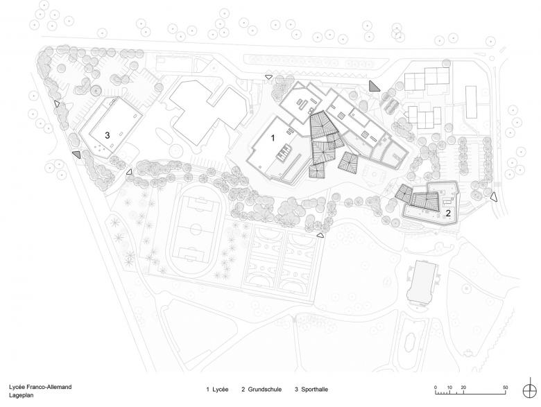 Built in collaboration with Atelier 2A+, the goal was to modernise the site of an existing school dating from the 1980s, including a Franco-German bilingual secondary school, a primary school, a lower secondary school and gymnasium, and to link them together with outdoor enhancements. This approach has resulted in the creation of an attractive place of learning for approximately 1,000 students, standing in a park amidst magnificent trees. Some parts of the existing secondary school have been kept and two new buildings built: the primary school, designed as a pavilion in the park in the northern area, and the gymnasium, which completes the overall composition towards the southern area. Thus, thanks to these needed improvements, a new school group with a clear presence and numerous references to the adjacent landscape has been achieved.
