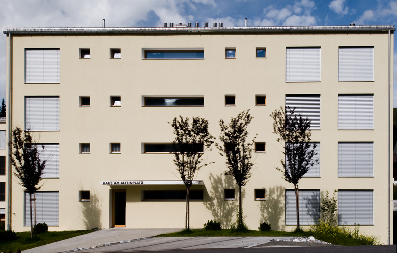 Beim Entwurf der Überbauung Alteinplatz in Arosa handelt es sich um zwei Wohngebäude, welche ohne das Umfeld auszugrenzen in Ihrer architektonischen Eigenständigkeit überzeugen. Durch ihre präzise Positionierung in der Landschaft und Umgebung entsteht eine gute Einbindung in das bestehende Gefüge des Ortes. Bei der Positionierung der Gebäude und Wohnungen auf dem Grundstück wurde der Sonnenverlauf respektiert und die Ausrichtung berücksichtigt. Dies ermöglicht eine maximale Besonnung des Wohnbereiches und der Terrassen.