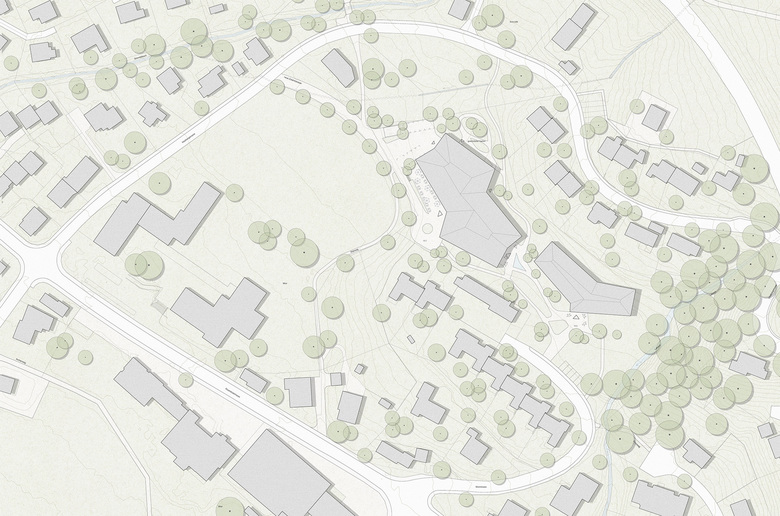 In schönster Landschaft und Aussichtslage fügt sich das neue Pflegeheim Wier in den Grünraum oberhalb des Ortszentrums von Ebnat-Kappel ein. Selbstbewusst zeigt sich das Pflegeheim als öffentliches Gebäude über der Weite des Sportplatzes. Die exponierte Lage am Hang, die Nähe des Waldes und der Ausblicke in die Weite bieten eine einzigartige Atmosphäre, die den gesamten Aussenraum prägt. Durch die geschickte Platzierung der beiden Volumen entsteht ein neues Ensemble von Pflegeheim und Alterswohnen, das sich selbstverständlich in die Landschaft einfügt und spannende Aussenräume bietet.