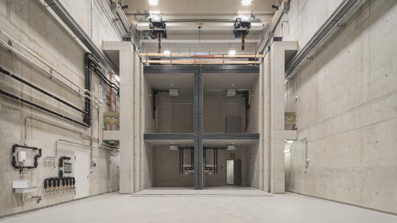 Herzstück des SPiN-Bau ist ein Fassadenprüfstand in der dreigeschossigen Halle des FuCon. Vier massive, schallentkoppelte Empfangsräume, die in eine offene „Stahlbetoneinhausung“ integriert sind, ermöglichen eine flexible Nutzung. Die präzise Einrichtung der Empfangsräume sowie die Anschlüsse für Prüffassaden und die variablen Deckenelemente wurden nach den unterschiedlichen Prüfszenarien konzipiert. So können die Deckenelemente zur Simulierung verschiedener Geschosshöhen flexibel angebracht, wiederverwendet und schadensfrei aufbewahrt werden. Die gesamte Hallenfläche wird von einem großen Kran mit einer Tragkraft von 10t bedient.