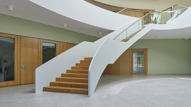 Im ersten Bauabschnitt wurde das Technikum des Unternehmens realisiert. Die freie Ausformung der Baukontur ermöglicht außerordentlich effiziente Laborgrundrisse mit S1 und S2 Laboren. Zudem wurden labornahe Arbeitsplätze, Büroräume vom Einzel- bis Großraumbüro sowie verschiedene Besprechungsräume und eine Cafeteria realisiert. Die organische Formensprache des Gebäudes zieht sich von der äußeren Gestaltung bis in den Innenraum. Der künstlich angelegte See mit vorgelagerter Terrasse bringt den besonderen Bezug zur Natur und zum Element Wasser unmittelbar zum Ausdruck. Damit gewährleistet bereits der erste Bauabschnitt des neuen Firmensitzes eine überzeugende Adressbildung.