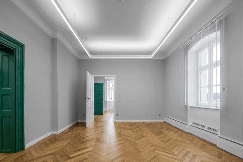 The finely graduated colour nuances of the walls and fixtures form a harmonous spectrum, which gives the rooms depth and life. They reflect the architectural variety of the historical structure and create a sensitive dialogue between old and new. The matt, coloured lacquer of the surfaces of the JUNG switches and push-buttons integrate naturally into the overall picture. Sometimes they melt into the wall colour, sometimes they provide conscious accents that give the space rhythm and structure. At the same time, the modern and smart electrical installation based on KNX technology provides convenience and efficiency. Lighting, shading and other functions can be controlled flexibly and adapted to the various uses of the building.