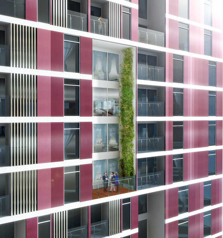 “U-Silk City”, the 12-hectare urban expansion in the south of the Vietnamese capital Hanoi is the largest project under construction in Vietnam and comprises nine up-market 28-50-storey residential highrises and a wide range of public leisure and shopping facilities in the interlinking, greened pedestal storey. The building depths stipulated in the existing master plan, which Franken Architekten is to optimize, is diveded up by voids, producing increased surface area, more light for the space inside, and an excellent microclimate. The voids are positioned in a parametrically generated rhythmic structure, this becoming “dancing voids”. Each of the residential highrises has its own rhythmic structure, such that a composition of nine similar yet nonetheless unique buildings emerges with additional areas that will be used as "sky gardens", referencing architectural utopias of the vertical city.Thge residential towers are characterized by the interplay between filled and empty volumes, which continues in the intricate roof landscape with luxurious penthouse apartments. The facade texture, which are irregular in their rhythm and oscillate in gentle colors and, just like the corrugated folds of the planned landscape architecture, trigger an association with silk, one of Hanoi's traditional products.