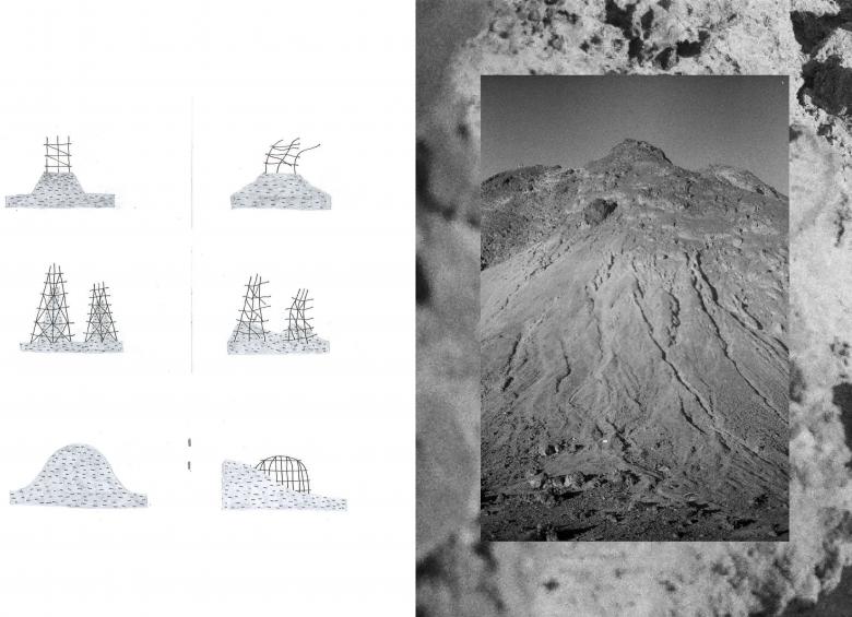 Creating vulnerable architectural forms on purpose is equal with meaninglessness that is not on the palette of western architectural thinking. Over a utopian imaginary project on an active volcano in Indonesia, I attempted to observe the existence of the remains —by means of time— from the perspective of the future mankind.