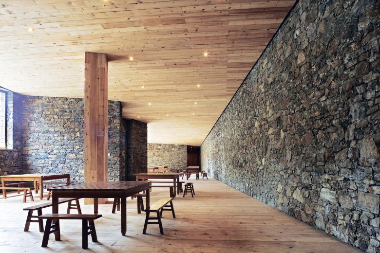 Construction materials are mainly local. All the walls and roofs are made of rocks collected from nearby the site. Tibetan masonry builders built the walls in the traditional manner and used local timber for the window and door frames, ceilings and floors.