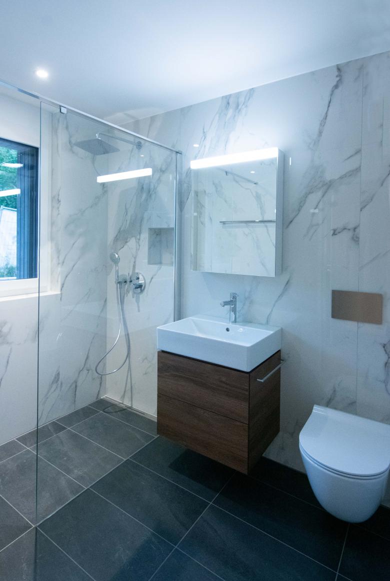 Die 8 Wohnungen sind auf je 3 Geschosse aufgeteilt. Drei Wohnungen haben direkten Gartenzugang mit attraktiven Aussenräumen. Drei Etagenwohnungen sind mit grosszügigen Balkonen ausgestattet, welche sich gegen Süden orientieren. Die zwei Wohnungen im obersten Geschoss verfügen über grosszügige Dachterrassen. Durch die süd- und südwestliche Orientierung ist eine optimale Besonnung gewährleistet.