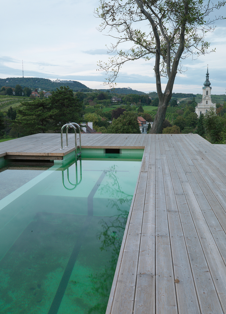 Extreme Bedingungen als Inspiration: Die Hanglage des Grundstücks wurde zum gestalterischen Leitmotiv. Da ist zum einen die Treppe, die für Sichtverbindungen und Licht sorgt, zum anderen das Arbeiten mit split levels, das – in guter Wiener Tradition – unterschiedlichen Funktionen verschiedene Raumhöhen zuordnet. Der Wohnraum öffnet sich in spektakulärer Weise zu den Weinbergen. Neben Transparenz und Klarheit – es dominieren Putz, Beton, Glas und Holz – wurde auch auf Flexibilität geachtet: Einzelne Bereiche können in Zukunft leicht abgetrennt oder zusammengelegt werden.