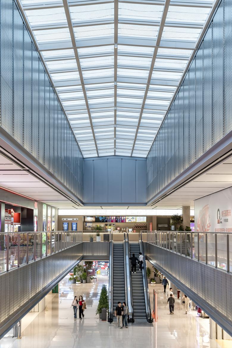 Kokaistudios innovatively retained the core section of this feature and introduced a circular corridor around the main structure, connecting it to the core section. As a result, the ventilation floor is transformed into a captivating visual island, serving as a versatile stage for exhibitions and fashion shows, adding value to the commercial space below.
