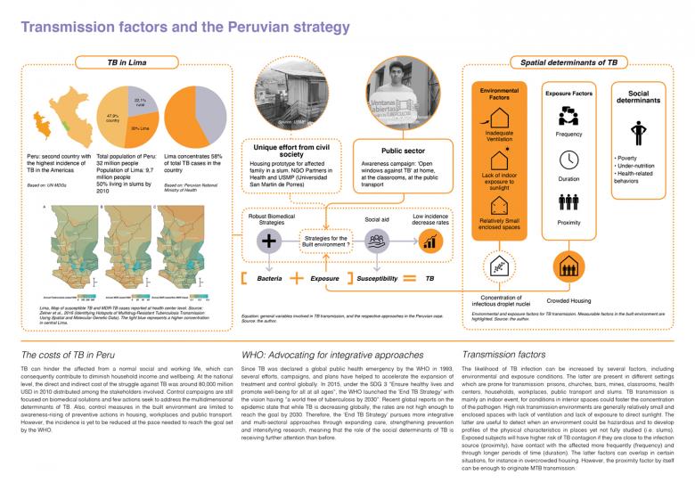 The research outlines the possible relations between spatial characteristics and Tuberculosis transmission factors on habitable spaces of affected dwellers in two different slums of Lima. An integrated intervention in the built environment is proposed to tackle specific risk settings, reduce transmission, and improve the health of slum dwellers.