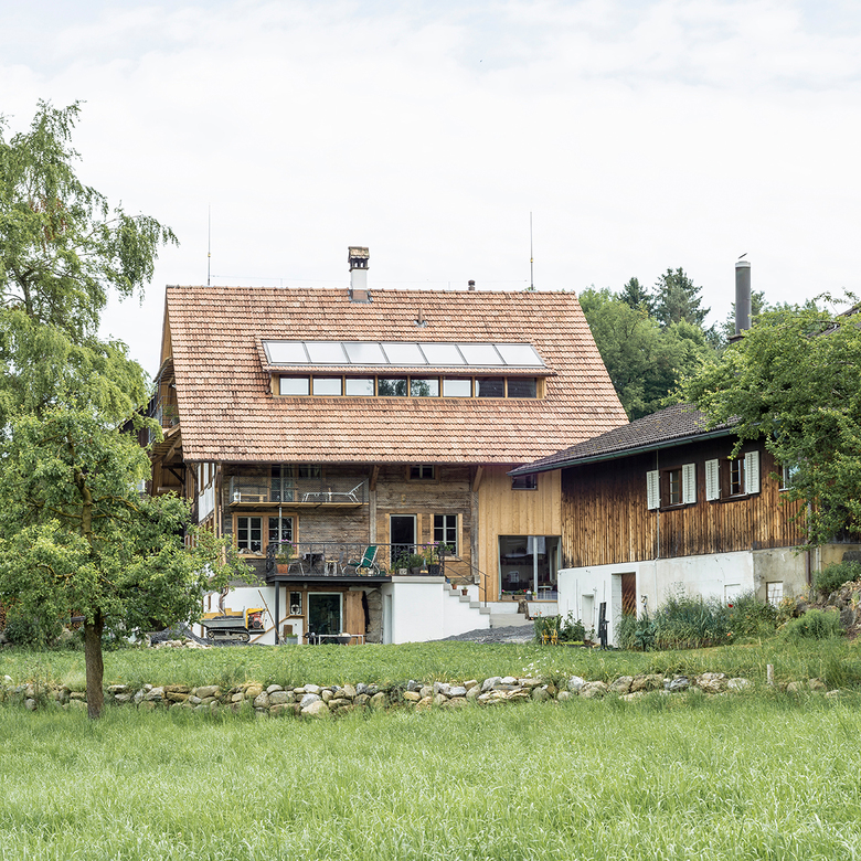 Zwei langgezogene Schleppgauben und eine lichtdurchlässige Giebelfassade sorgen für ein helles Ambiente in der loftartigen Dachwohnung. Der alte Wohnteil wird in historischer Weise rekonstruiert. Im schmalen Ökonomieteil wird eine kleine Wohnung mit grossen Fenstern eingebaut.